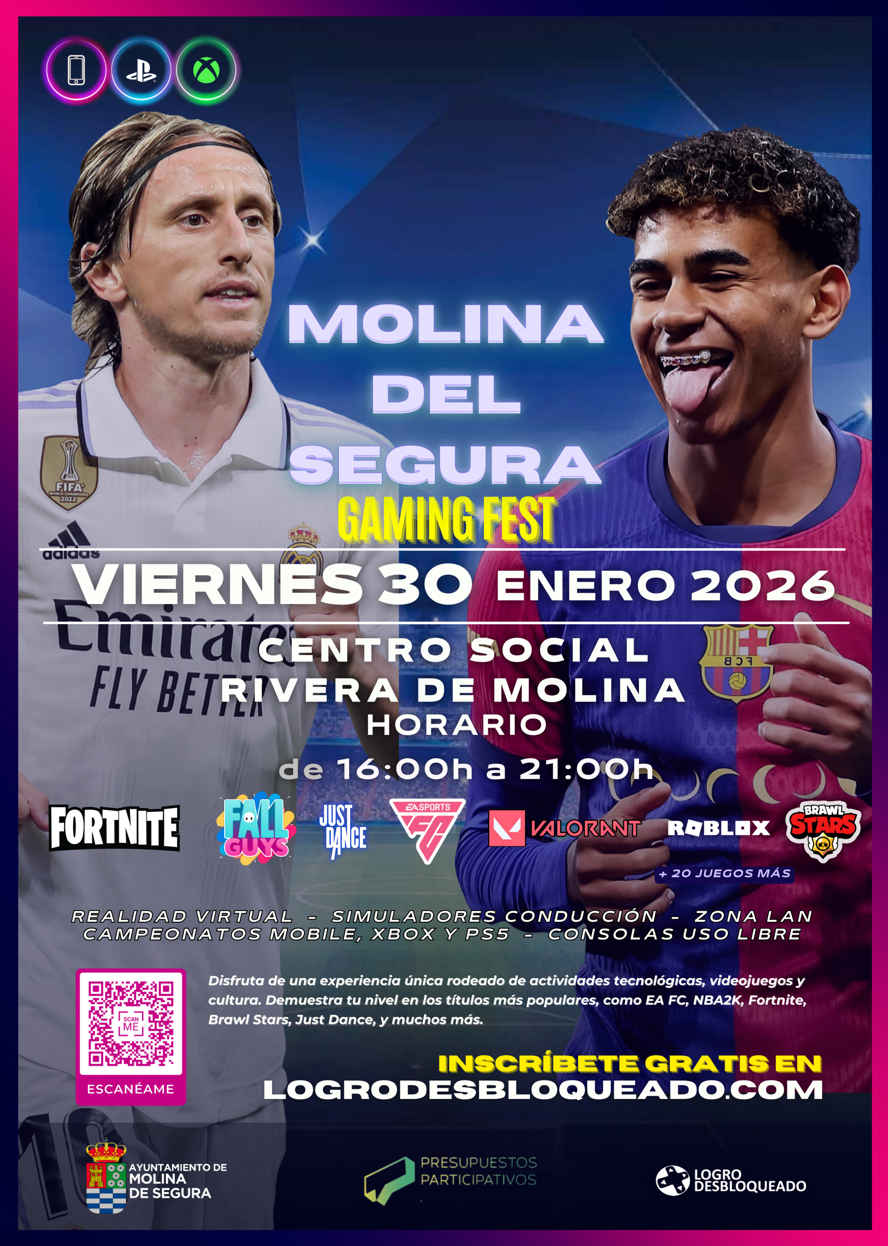 Juega de manera libre en los stands oficiales de PlayStation® y Xbox®, con los últimos juegos del mercado, y los más populares como Fortnite o Forza Motorsport